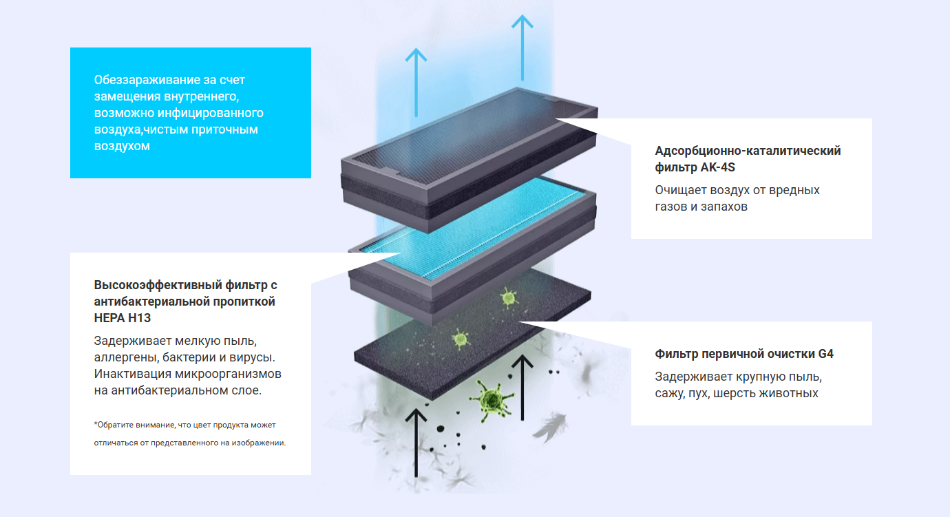 - Исключает риски простуды из-за проветривания окном в холодное время, является средством профилактики вирусных инфекции.