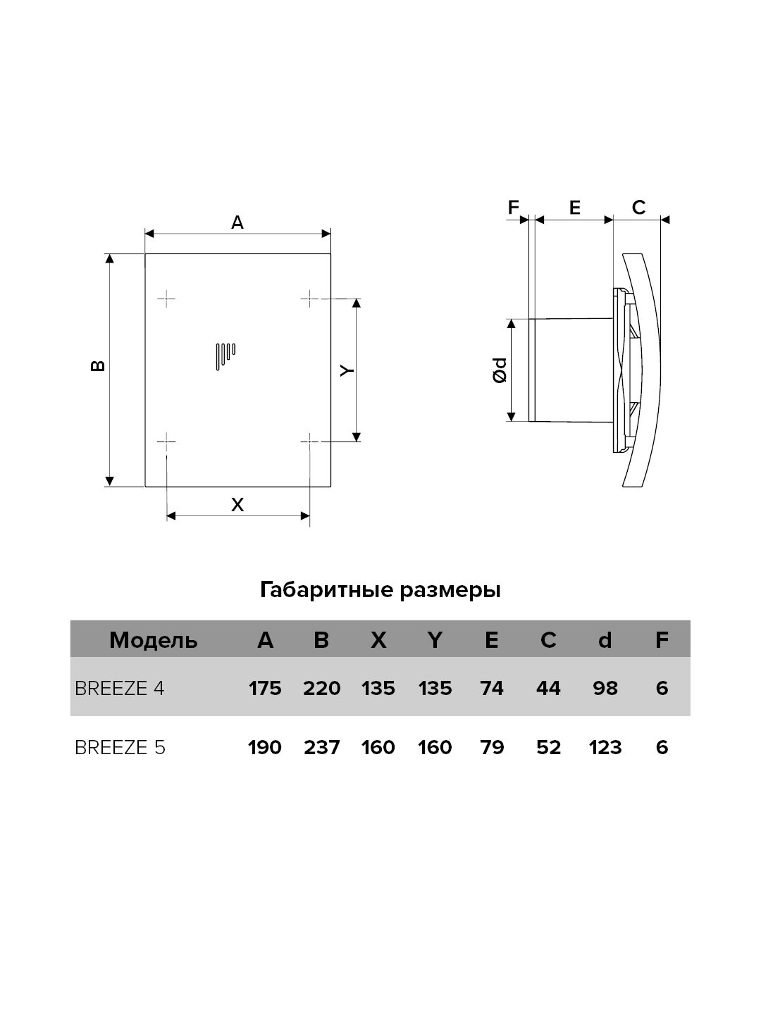 Вытяжные накладные вентиляторы BREEZE. Для монтажа в вентиляционные шахты или соединения с воздуховодами. Диаметр фланца 100 и 125 мм. Стильный дизайн с закрытой лицевой панелью выгнутой формы. Двигатель на шарикоподшипниках с низким уровнем шума и увеличенным сроком службы (до 40 000 часов непрерывной работы). Сниженное энергопотребление. Бесшумный обратный клапан с резиновыми стопперами. Подходит для монтажа в потолок (после снятия обратного клапана). Уровень защиты – IP24.